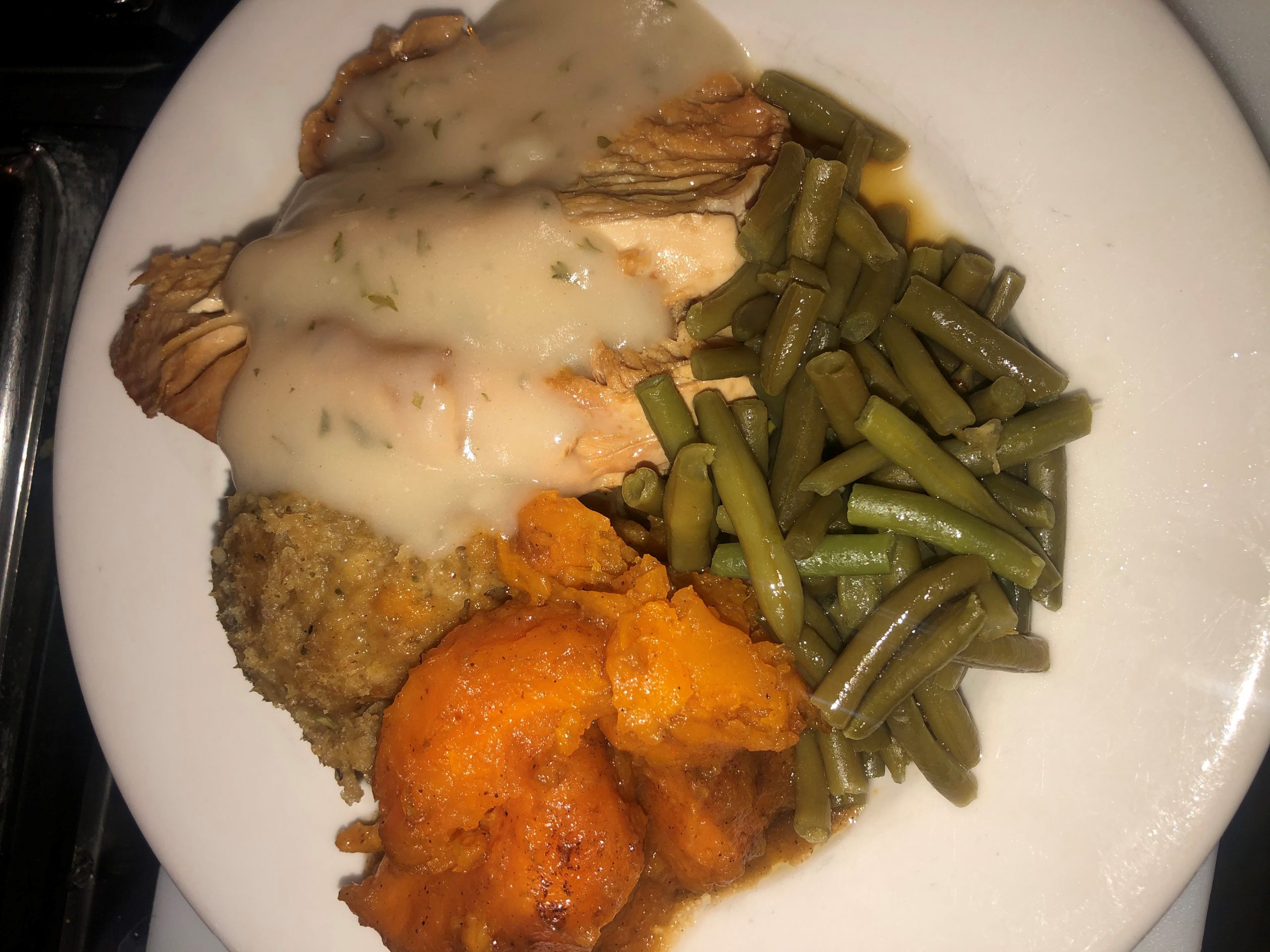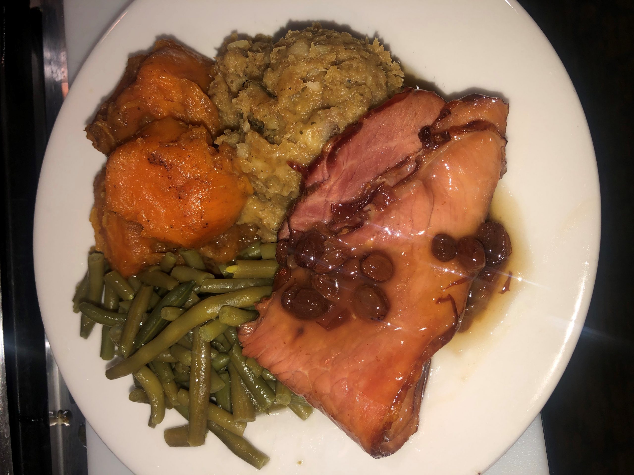 Also featured are two images from our special holiday menu during the Thanksgiving holiday: turkey or ham ,stuffing, green beans and candy yams.