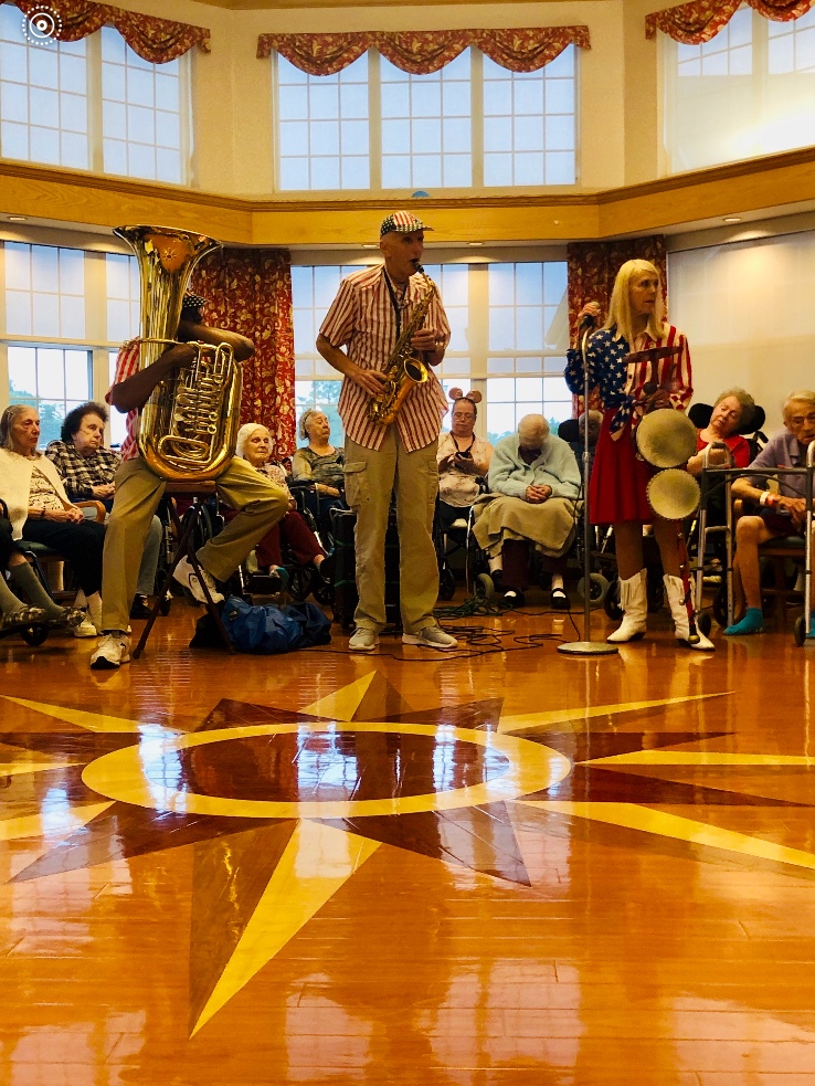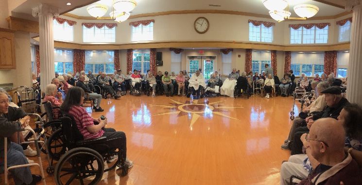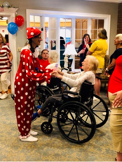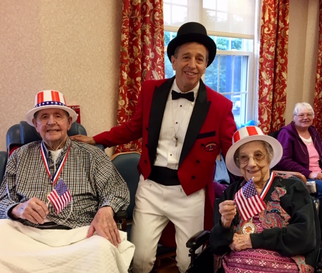 Lord Chamberlain residents were treated to visit by the Barnum Road Show on June 25th. This year’s Barnum Festival Ringmaster was Stephen Santa as seen in the title photo. This was a fantastic treat as Stephen was also the Ringmaster of the 1977 festival. Not to be out shown, Rose Daiuto, 103, was this year’s Honorary Ringmaster for Lord Chamberlain.