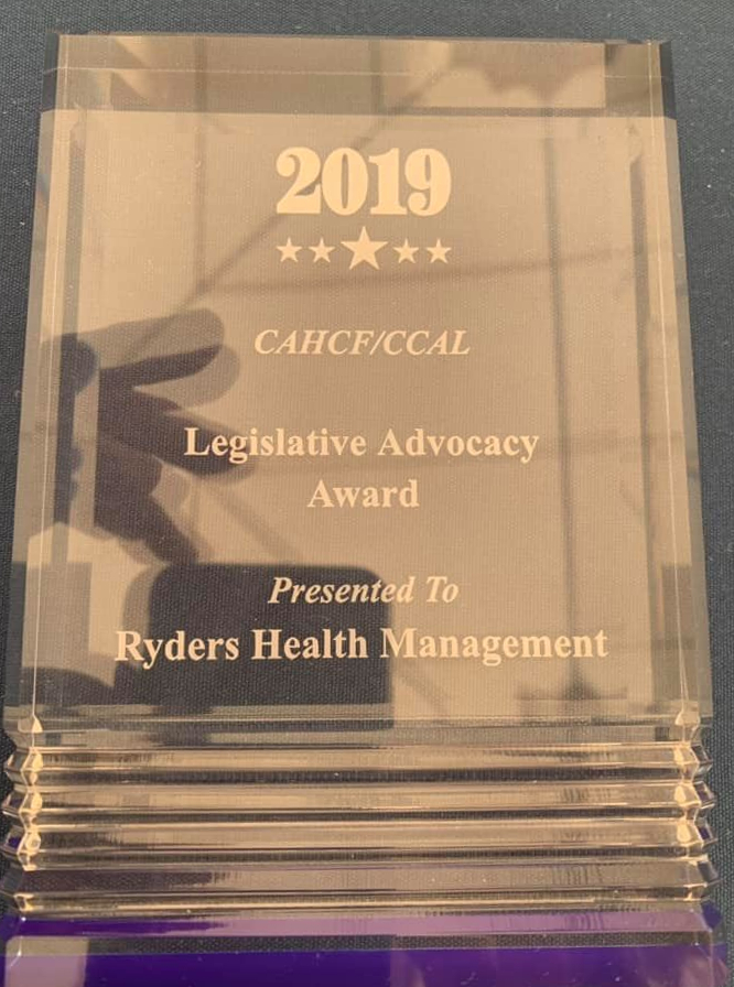 The Legislative Advocacy Award was presented to Martin Sbriglio, CEO, who accepted the awards on behalf of Ryders Health.